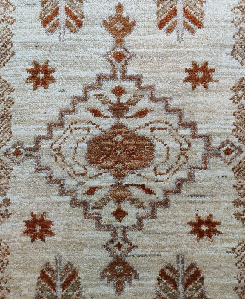 I Kazak sono tappeti tessuti con lane Ghazi ritorte a mano (e non cordate meccanicamente), con colori minerali e vegetali che vengono realizzati direttamente in Afghanistan.